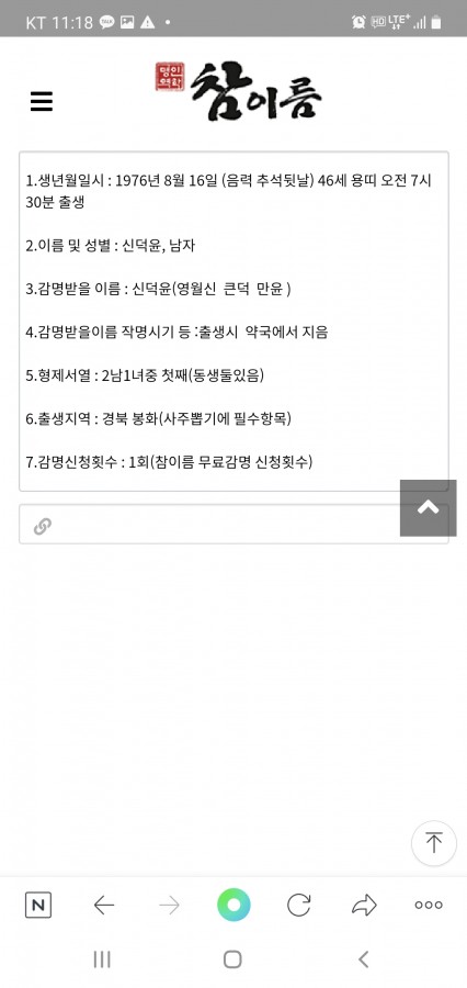 이름 감명 부탁드릴게요