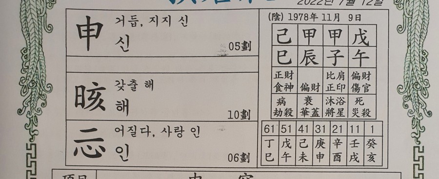 4.감명받을이름 작명시기 등 : 2022년 전라도 해월명리 에서 개명