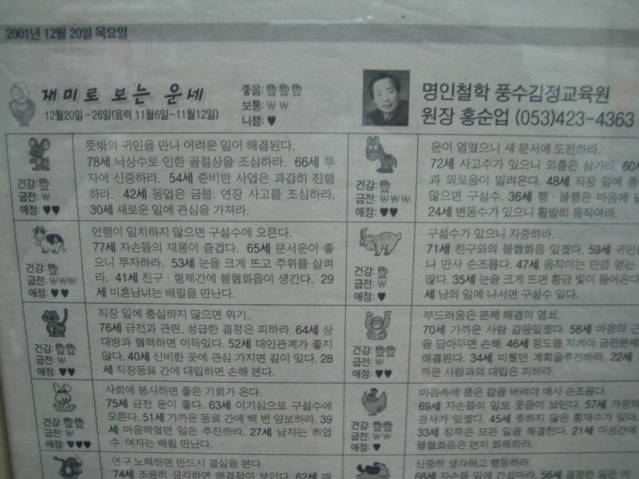 1. 대구 매일신문 주간운세(辛巳年 2001.12.20자)