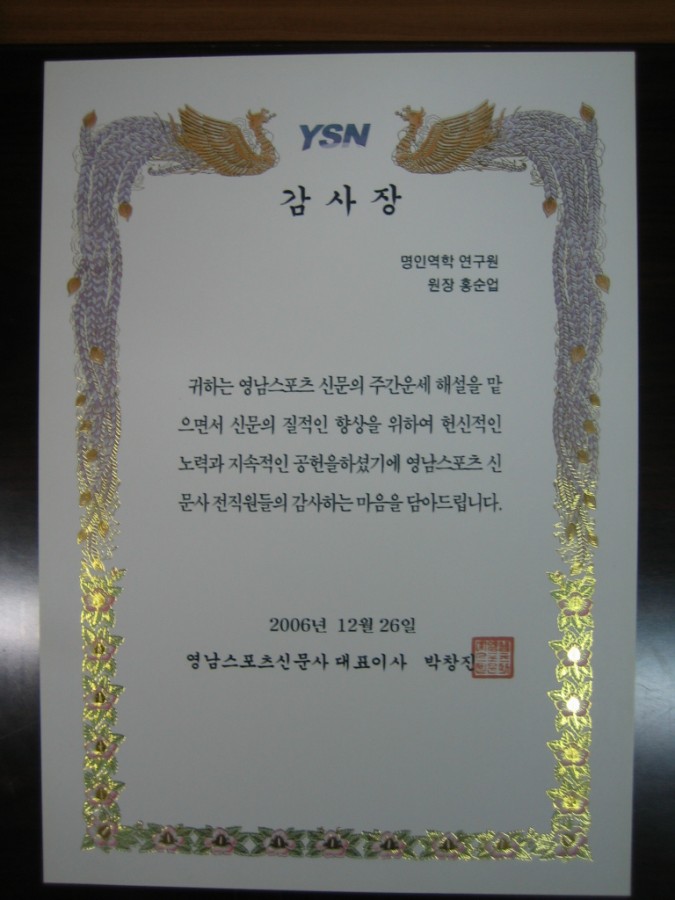 영남스포츠신문 주간운세해설가(감사장 2006.12.26) 페이지 정보 작성자 관리자 댓글 0건 조회 5,736회 작성일 10-07-20 18:18 목록 본문 ㅇ 영남스포츠신문 주간운세해설가(감사장 2006.12.26) 이전글"相生의땅 가야산" 책자에 인물 수록(2008. 8. 28자 출간) 10.07.20 다음글대구 매일신문 운세해설가 10년연재('01.12~'12.3월 현재) 10.07.20 댓글 0 댓글목록 등록된 댓글이 없습니다.