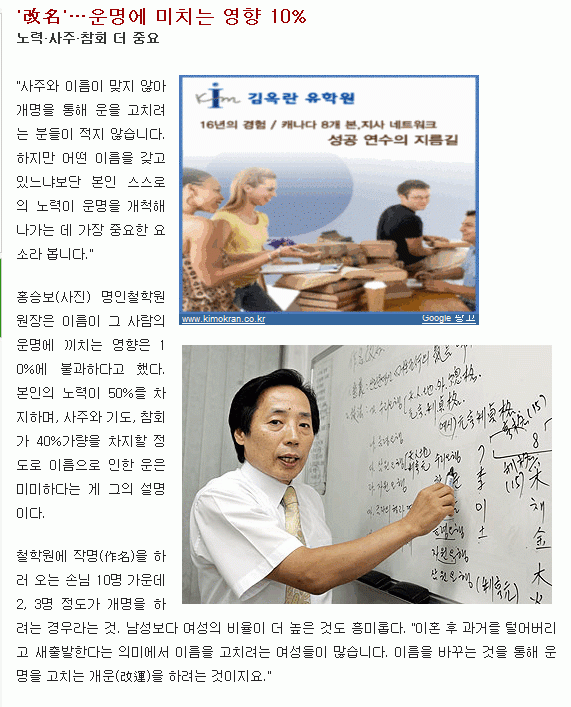 이름이 뭐기에! 개명이야기 (대구매일신문 2007.8.25자) 페이지 정보 작성자 관리자 댓글 0건 조회 4,483회 작성일 10-07-20 18:05 목록 본문 이름이 뭐기에! 개명이야기 (대구매일신문 2007.8.25자) 이전글풍수역리로 본 대구 (대구매일신문 2008.3.1자) 10.07.20 다음글설 명절고민 어떻게,장묘문화 (대구매일신문 2007.2.17자) 10.07.20 댓글 0 댓글목록 등록된 댓글이 없습니다.