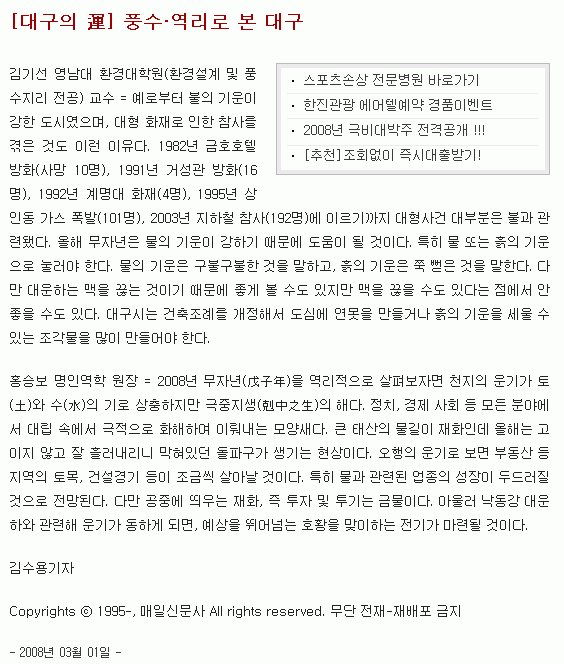 ㅇ 풍수역리로 본 대구 (대구매일신문 2008.3.1자)