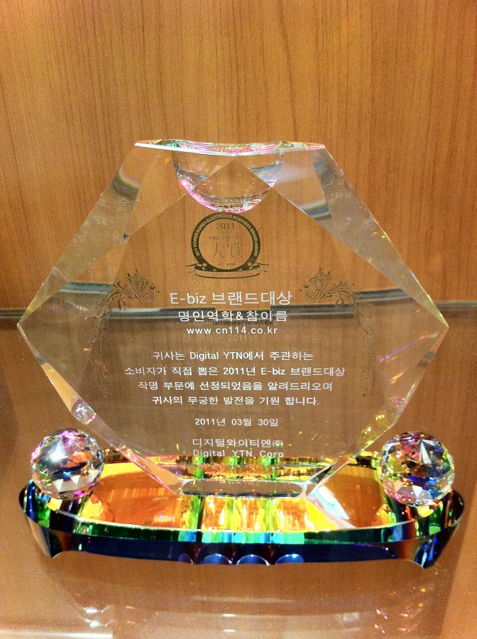 Digital YTN 2011년 작명부분 브랜드 대상 수상(2011.3.30자)